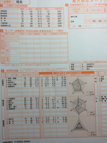 夏休みに受けた模試3つが全部返ってきた(呟く気にはあまりならないのでここに載せることにした)受けた順に 東大オープン(河合) 英語の採点辛すぎるし数学はそこそこ大変だったのでこんなもん(理科悪すぎ)東大実戦(駿台) 英語(簡単) 数学(高1模試) 国語(puke)…